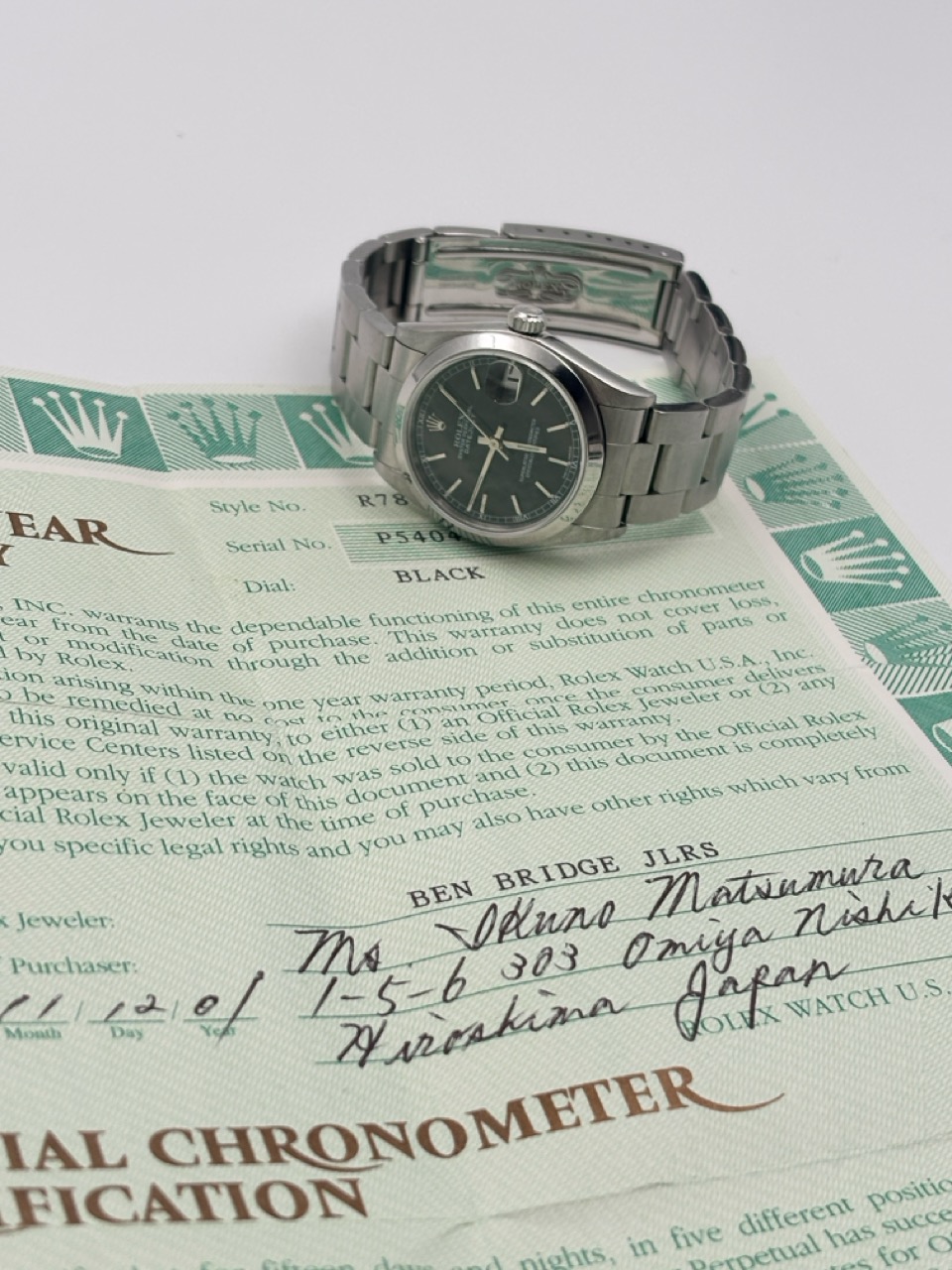 The Rolex Datejust 31 ref. 78240 This is a classic stainless steel watch with with smooth bezel with a black dial with luminescent round hour markers. It combines elegance and robustness with its 31mm Oyster case and the Oyster bracelet. It is equipped with the Caliber 2235, and gives accurate, dependable automatic movement.