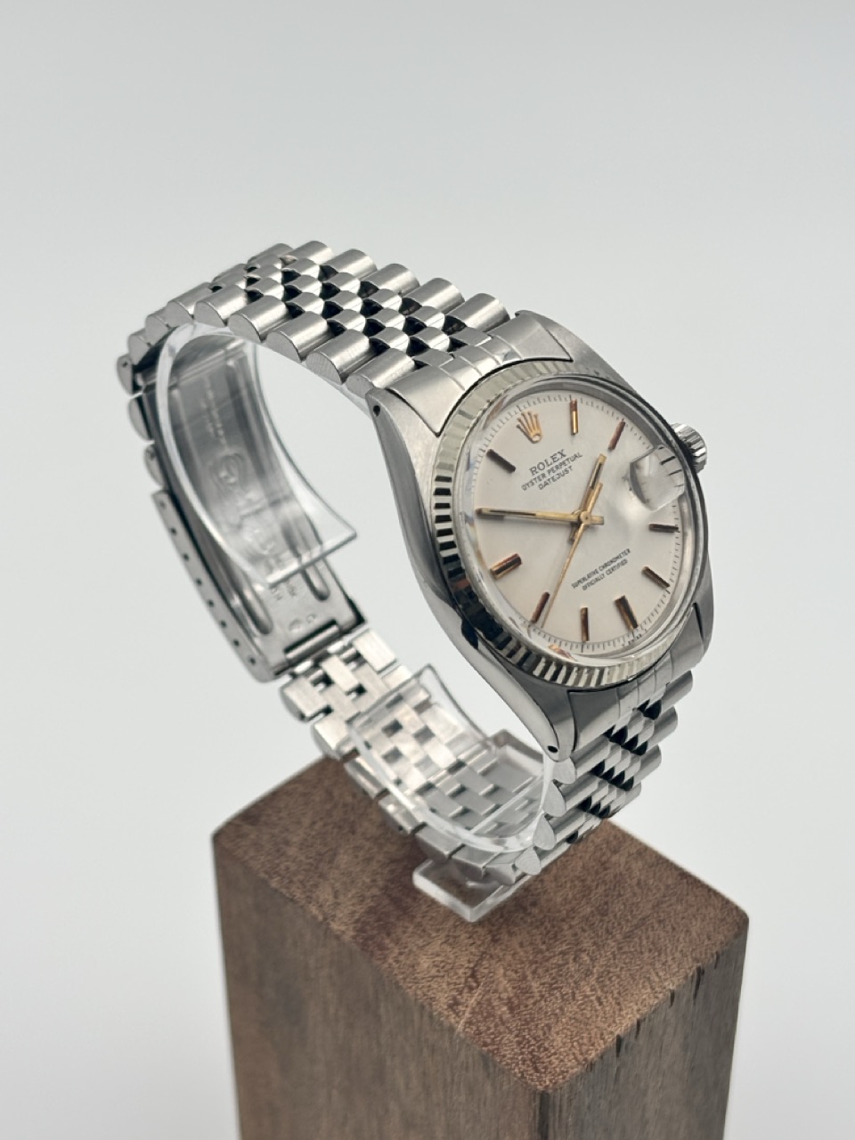 This Rolex Datejust with reference number 1601 is in a good condition and performs properly. The dial is white with Golden: Crowns, Indices and pointers. The bracelet is 62510H with 555 End Links and still has all 22 links excluding the endlinks.